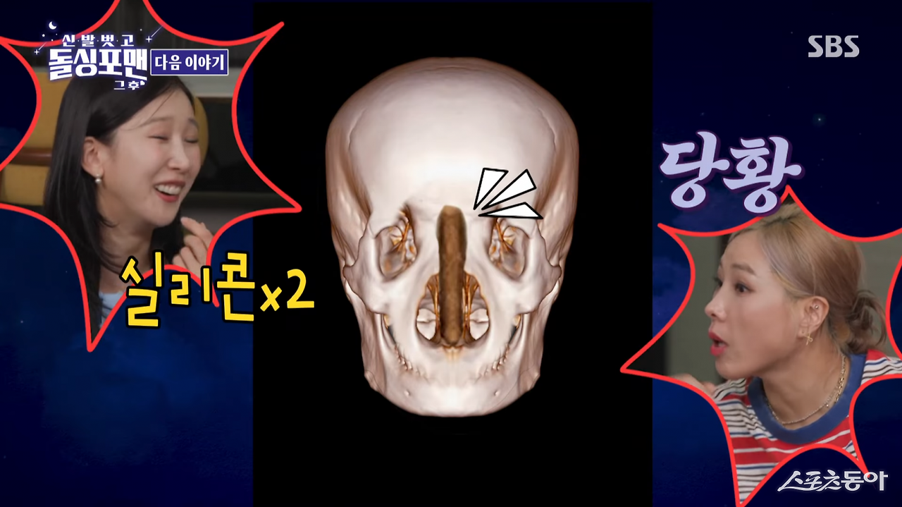이날 박소영은 “자연스럽게 제 성형 이야기 해볼까요”라며 코 엑스레이 사진을 공개했다. 사진 속 코 중앙에는 길게 자리한 실리콘이 뚜렷하게 보였다. 놀란 신봉선이 “안에 있는 거 뭐야?”라고 묻자 박소영은 “실리콘이에요. 의사 선생님이 그냥 일자로 툭 넣어버린 거예요”라고 털어놨다.